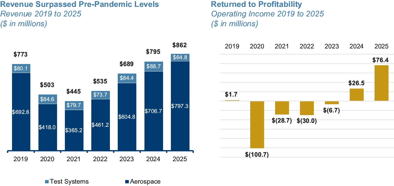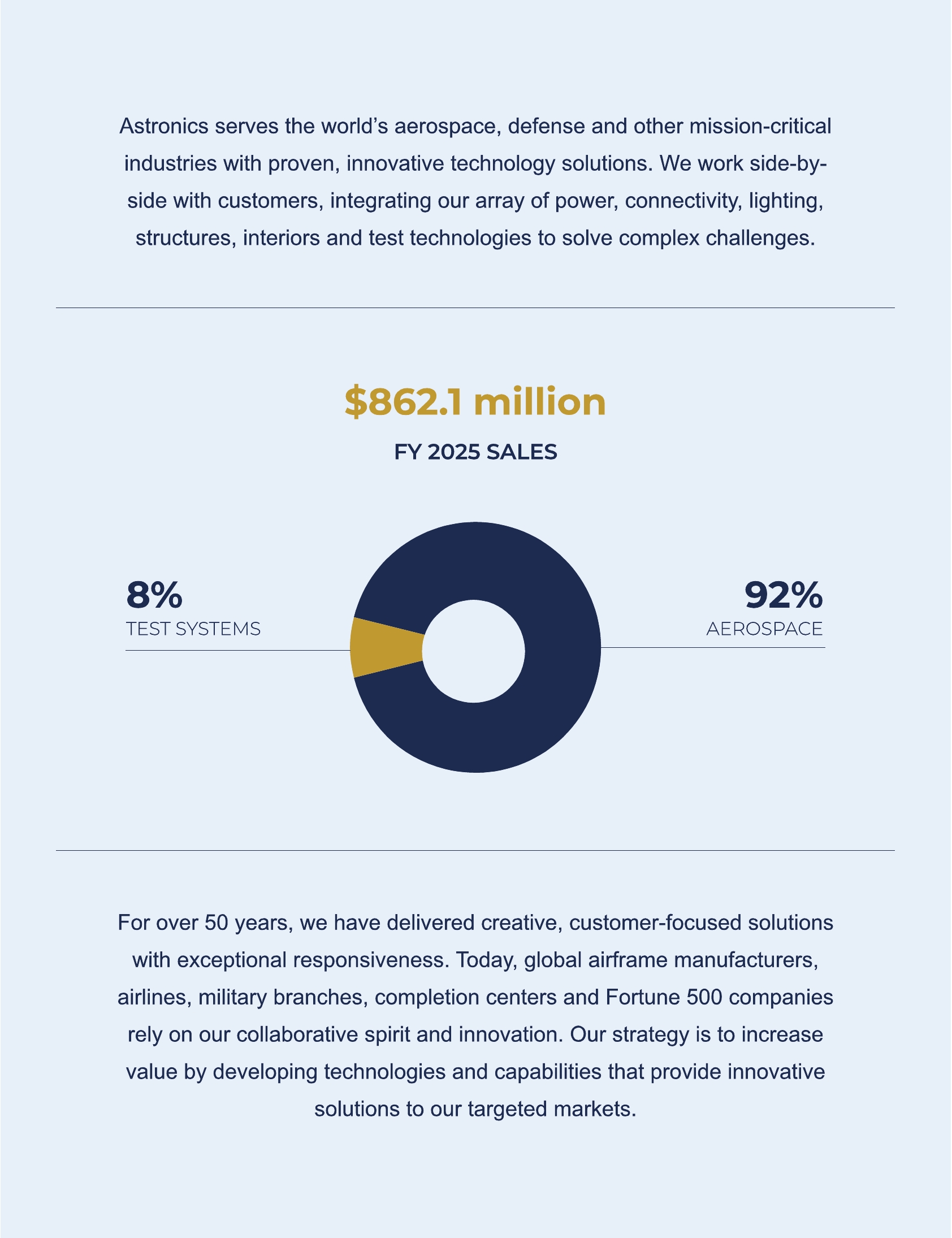 2025 was a very strong year for Astronics that reflected the effort of the team, the strength of our innovation and the power of our market leading positions. We advanced the momentum and energy that has been building over the last two years as we surpassed levels achieved prior to the pandemic. Importantly, we believe we are well positioned for an even stronger future. | ![]() | ||
